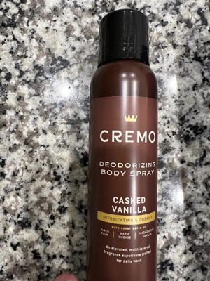 [This review was collected as part of a promotion.] Cremo Deodorizing Body Spray, Casked Vanilla has a great feel on the skin and provides excellent value for the price. The smell of Casked vanilla is rich, warm and long-lasting.