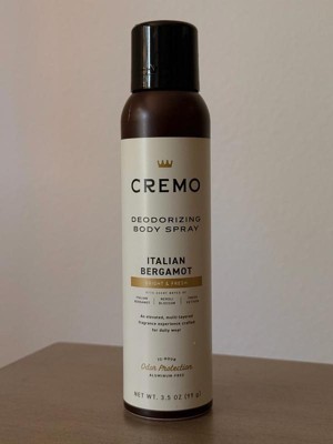 [This review was collected as part of a promotion.] I've been using the Cremo Deodorizing Body Spray, Italian Bergamot for daily wear and it's a great option for the price. The scent is fresh and citrusy with a clean bergamot character that feels light and pleasant. It sprays evenly and is easy to apply without leaving wet spots. The finish is dry and comfortable, so it doesn't feel sticky on the skin. It lasts a decent amount of time for a body spray and keeps you feeling fresh throughout the day.