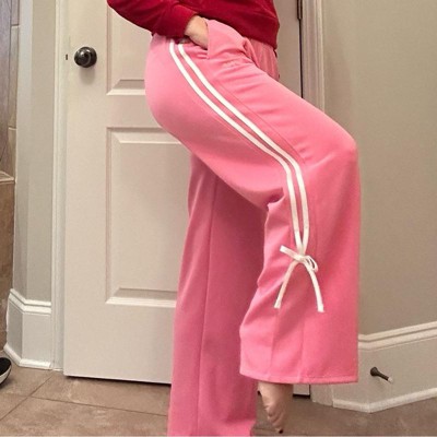 The Champion Women in the Stands Side Tie pants are seriously the absolute cutest pants that I now own. Hot pink is my favorite color and I’m obsessed with bows. These fabulous pants have both! I weigh 155 pounds and am 5’5” and these are beyond perfection. I ordered the Medium, which is what I normally wear. Bring on all colors!