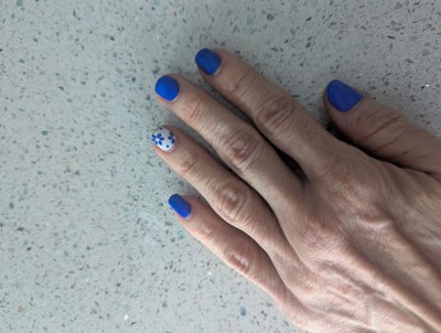 What a beautiful shade of royal blue. I like the flower accent nail, it really compliments this set. I will be adding these to my Dashing Diva rotation.