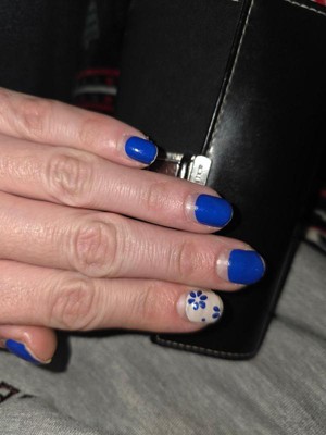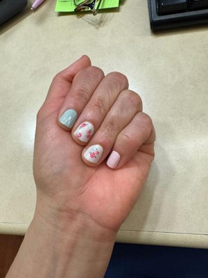 So cute and perfect for spring. My only "complaint" is it only comes with two blue ones, so if I want to use the set again, it would only be pink and floral. I love every Dashing Diva set I use - so glad I found them. Regular nail polish chips on me within a day no matter what I do/brand I use. I do put a top coat on the nail strips and reapply top coat every other day, and that seems to really help longevity.