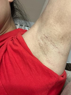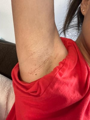 [This review was collected as part of a promotion.] I have been a user of other secret clinical antiperspirant/deodorant for a long time. This was the first time I’ve used this particular 100 hour invisible solid. As far as effectiveness goes, it works very well as an antiperspirant. I tested this out in warm weather and my underarms did not sweat at all which is what it’s suppose to do. Even though it is a white solid formula, it did dry clear. The smell of this was cucumber and green tea which was very light, fresh, and clean. This is all good things and would work for many people. However after a couple days, my armpits started feeling irritated, bumpy and was looking red. I naturally have sensitive skin and I think this product was a lot stronger than my armpits could handle. Because of this, I had to stop using it. In my video my underarms are smooth and then in the photos which was 3 days after using it, my pores are completely clogged. You can see the redness and irritation. I would recommend that if you have sensitive skin, this product may not be for you.
