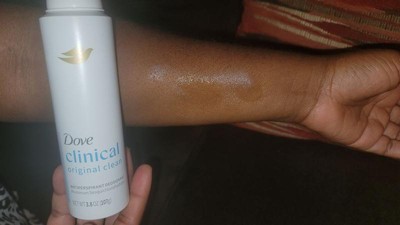 [This review was collected as part of a promotion.] I really have been enjoying thos Dove clinical deodorant spray. I tend to buy deodorant sticks but this has been a pleasant change. The spray works well. Keeps me dry during the hot day and also smells so fresh! I can leave a but if a white cast if sprayed on clothing. Its best to spray and let dry before putting on shirt. It doesn't leave underarms white with powder, so that is always a huge plus! Will definitely keep using.