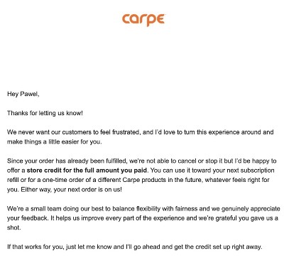 I originally purchased several tubes of this product directly from the company’s website. The reason I purchased multiple items was because the price decreased when more products were added to the cart. At no point during my purchase did I knowingly sign up for or agree to a monthly subscription. Approximately one month later, I received an email stating that my account had been charged $90 for another shipment of four tubes. The company claimed that I had enrolled in a monthly subscription service. This was never clearly disclosed or agreed to during my purchase. When I contacted customer service, they stated that the products had already been shipped to my address but agreed that once I returned the items, I would receive a refund. However, in a later email they changed their position and stated that the refund would only be issued in the form of store credit, which is unacceptable since I did not authorize the subscription or additional charge. This appears to be a misleading subscription practice where customers are unknowingly enrolled and then charged for recurring shipments. Resolution requested: I am requesting a full refund of $90 to my original payment method once the products are returned. I do not accept store credit as a resolution. If this issue is not resolved, I will also pursue a chargeback through my credit card provider.