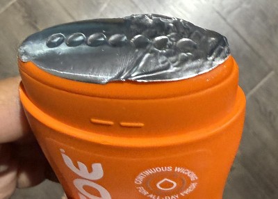 When I finally got my order after it was delivered to the wrong door. I opened up the deodorant and noticed that it had already been opened and I’m assuming used because the foil covering the holes was pulled back and product was already coming out.