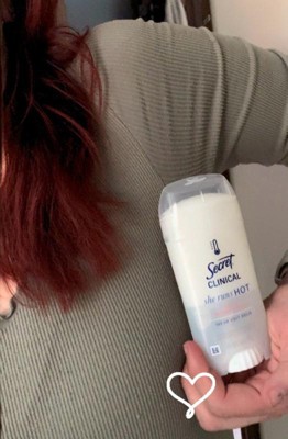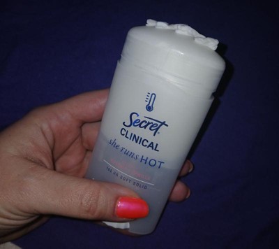 [This review was collected as part of a promotion.] Secret Women's clinical life stages she runs hot deodorant is actually pretty great! Im in my pre- menopause stage and I sweat like crazy its pretty embarrassing and very uncomfortable for me, I started to wear this deodorant and it smells great and last all day long and keeps me dry. And no more stinky Pitts!