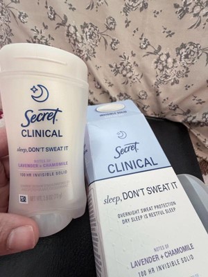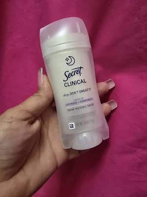 [This review was collected as part of a promotion.] The Secret Clinical Invisible Solid in the Lavender + Chamomile scent is a new favorite! I sometimes wake up feeling overheated and uncomfortable, but this product delivers on its promise of clinical-strength protection. It applies smoothly and is completely invisible. The scent is the real standout feature with a soft, calming blend of lavender and chamomile. It isn't overwhelming, but just strong enough to make you feel clean and relaxed. If you are looking for protection that smells nice, I cannot recommend this enough!