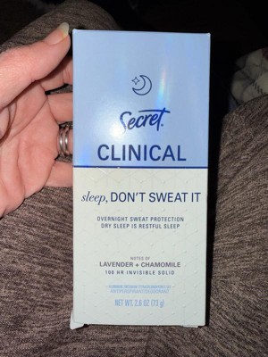 [This review was collected as part of a promotion.] As someone who sleeps hot, I’m so happy with Secret Clinical sleep, Don’t Sweat It. It goes on smooth and dry, feels so pleasant, has a lovely, relaxing scent, and really does the job. I wake up with soft, dry armpits and feel better for it. This is absolutely an excellent antiperspirant and deodorant. My favorite.
