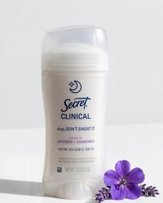 Secret Women's Clinical Life Stages Overnight Deodorant - Lavendar & Chamomile - 2.6oz: Under Arm, Invisible Solid, Normal Skin