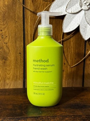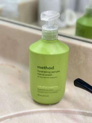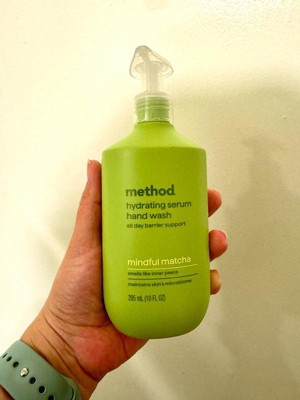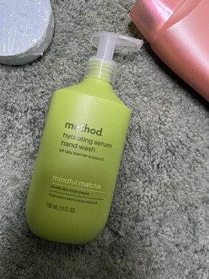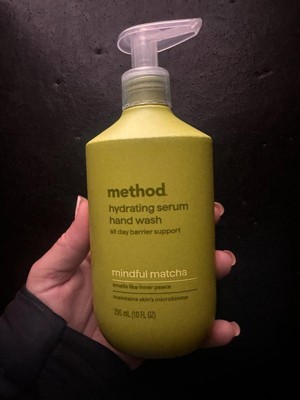 [This review was collected as part of a promotion.] I got the method brand hydrating hand serum hand wash in size 10oz in the scent mindful matcha. Let me start with the scent. It is absolutely glorious. I really expected this to smell more medicinal herbal and green, but it is very aromatic and much more complex. I literally want this in a hair and body wash and lotion. My favorite scent by method by far. Now onto the negatives. I can understand why it doesn’t strip skin barrier because it hardly lathers it just feels like your putting a face serum in your hand and rubbing it around. I did get it to lather 1-2 times barely but my hands don’t feel ‘clean’ after using. I am a habitual hand washer so it was nice to not have dry cracking hands after washing them all day, but I can’t get past the not feeling clean part. As for the bottle, I love it, it’s chic and clean girl aesthetic looking, the pump is good quality and disperses a good amount. I really hope they offer this in other products because I want to smell this scent forever. It almost doubles as a bathroom scent dispenser. Mt bathroom smells just like it everytime I walk in. 10/10 for scent but 4/10 as a hand wash