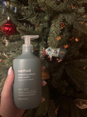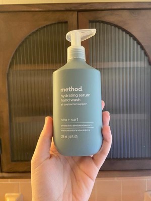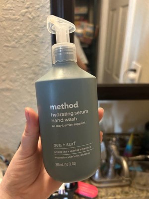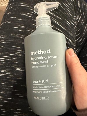 [This review was collected as part of a promotion.] I was gifted this product in exchange for my opinions. Method Hydrating Hand Serum is a great hand soap especially during the harsh winter months. I’d recommend this product to any who has to wash their hands often it doesn’t dry your skin out and leaves you feeling clean and hydrated almost as if you just applied lotion. The consistency when the product comes out is almost like a gel/lotion feel. It takes a couple seconds of scrubbing before bubbles form before that it just feels like rubbing in a nourishing lotion. I absolutely love this product and how my hands feel so soft after like I’ve used a face moisturizer, but on my hands. I received the scent sea + surf and it reminds me of the California coast. The scent is not overpowering, but it is long lasting on your hands which doesn’t bother me. The pump is easy to push down and I have no trouble doing it one handed. Packing seems sturdy and easy to recycle or reuse. I was gifted this, but I will definitely be repurchasing. The price point is on par with what I’d expect so it’s a good value for a product I find really useful. Been using it about a month now and wash my hands frequently and haven’t run out yet. Makes washing your hands feel like a luxurious experience almost!