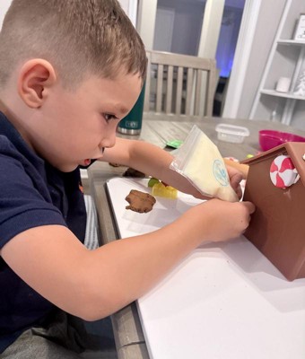 [This review was collected as part of a promotion.] Cute idea, but there’s definitely room for improvement. The icing bag is too small, and the pretend icing constantly bursts it open. The “icing” itself has a thick, glue-like consistency, so you end up rolling it around just to gather it back into the bag. The pretend gingerbread dough is also too soft—you can barely pick up the pieces to place them next to the house. It’s very similar to kinetic sand. My son did enjoy the activity and the ability to redecorate, but it would have been nice to have a board or base to set the house on. Honestly, it’s just as messy as making a real gingerbread house, only you can’t eat this one. Personally, I wouldn’t recommend it.