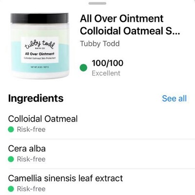 I was skeptical because most of the reviews were promotional or from the TT site and seeing others have a reaction. But after seeing the EWG and Yuka rating I was willing to try it. I’m so glad I did because it cleared up 85% my baby’s eczema in one night. I put her to bed with red flaky cheeks and the ointment on and she woke up with clear cheeks with minimal redness and texture. Same with the rashes on her arms, legs, and belly. I won’t share before and after pics but know that her eczema was so bad she had a prescription medicated oil that could only be used sparingly. It helped but couldn’t clear her rashes. I was previously using Eucerin which also helped. I was going to buy another because I had gone through nearly all 8oz of the baby eczema cream but that had an orange Yuka rating and tubby Todd had 100%🟢
