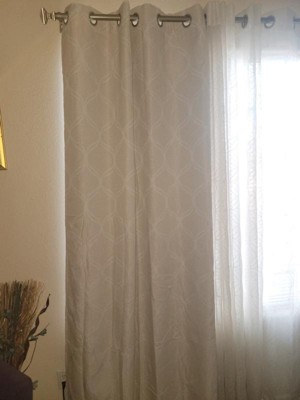[This review was collected as part of a promotion.] These Sun Zero Tikal blackout curtains honestly impressed me more than I expected. The fabric feels thick and high-quality, and the woven ogee pattern adds a soft, elegant touch to the room without being too busy. They block out almost all outside light, which has made a huge difference during daytime naps and early mornings. The grommets glide smoothly on the rod, and the curtains hang beautifully with a clean, modern shape. Overall, they look stylish, offer great privacy, and truly deliver blackout performance.