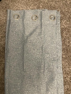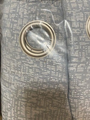 Add intrigue to any room of your home with the woven abstract geometric raised texture of Serenity Curtain Panel Pairs by Sun Zero. Total Blackout technology with dual magnetic closures blocks out 100% of outside light. . . Grommet top design allows for easy hanging on a standard curtain rod up to 1.5" in diameter. Pair includes two (2) panels. Measure carefully prior to purchase. Pair includes 2 light blue panels, each measuring 36" width by 63" length. Measure carefully before selecting your desired size and quantity. Rod not included. Machine wash cold on gentle cycle. Use only non-chlorine bleach when needed. Tumble dry on low heat, using a cool iron as needed.