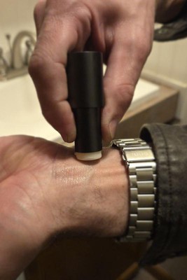 [This review was collected as part of a promotion.] I like that this is a stick and easy to apply only where desired. Not overpowering, but It lasts for a long time since it's contained in a petroleum type base. I had no issues with staining or residue, but I could definitely felllt the semi greasy/slick area on my skin where applied for a while. The smell itself is a bit basic for me, but it's pleasant enough, especially for travel or after gym.