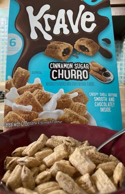 [This review was collected as part of a promotion.] The Krave chocolate churro cereal is absolutely delicious. The box makes it appealing. The cereal looks like little churros and tastes like them too. Texture is crunchy but soft once milk is added and has a nice hint of chocolate inside. Not too sweet. Perfect balance for a great and quick breakfast. Really enjoyed this!