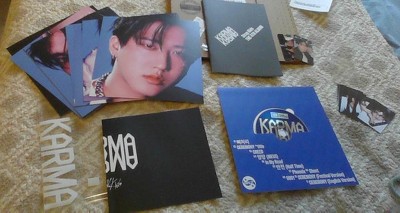 - Available in a limited KARMA VER. – contents include: Outsleeve, Photobook, CD, Photocard (1 of 8), Unit Photocard (1 of 3), Photo Cover Set, Clear Binder & Photo Set, KARMA Wristband Set, Folded Poster. US/EU Retail Exclusive: Postcard.