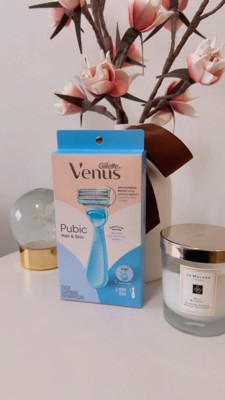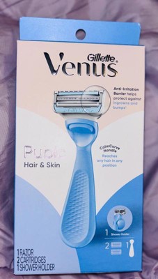 [This review was collected as part of a promotion.] Venus razors have always been my razor of choice. They have a sleek design that is comfortable to hold. this came with a replacement head which is great. I have very sensitive skin and this did not irritate my skin anywhere. Very sharp as with any other razor so you have to just take your time. Did not leave my skin feeling itchy or red. Great product and I’m so happy I have this new razor for pubic areas only!