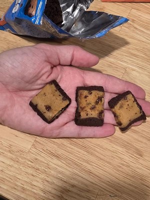 I enjoyed these, however they are small but you get like 6 in a pack. I don’t taste chips ahoy cookie much it’s more of a raw cookie dough taste but the brownie is fudgey and chewy. they make for an easy snack. I had some with my hot chocolate and I also keep cool whip in the freezer so I even put some on top of them for a dessert style snack.