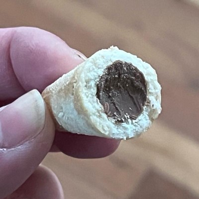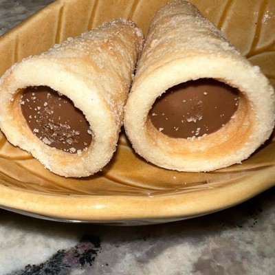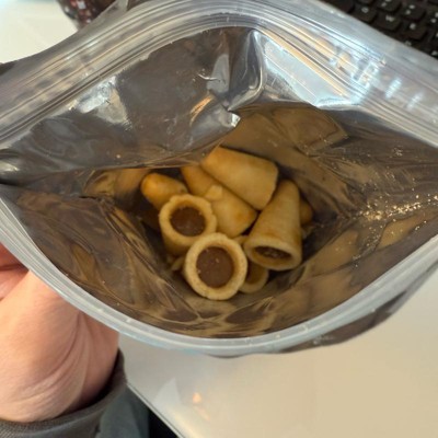 I typically like hazelnut flavored snacks but the flavor of these did not land for some reason. It was too strong and the filling had an unpleasant aftertaste. The shapes were unique and fun to eat and the exterior was nice and crunchy but overall I would not get them again. I kind of wished for a more gooey inside.