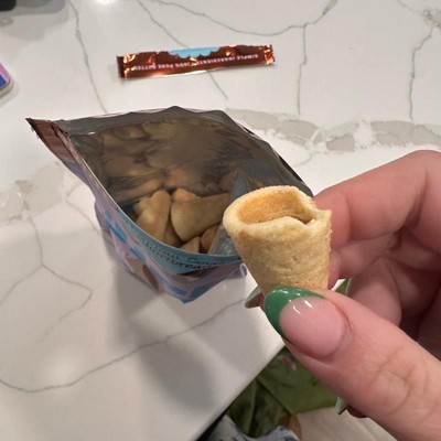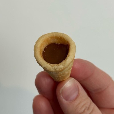 The quality of these were amazing. They were all full - none broken which is impressive. They were all almost identical as well which was consistent. I think it was a perfect amount of hazelnut in the cookie cone. I just wish there were more in the bag! It was so good and sweet. It’s like the bottom of an ice cream cone full of chocolate.