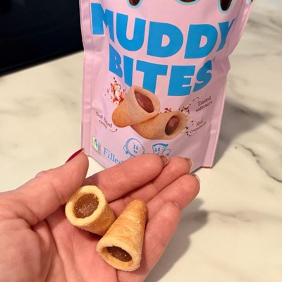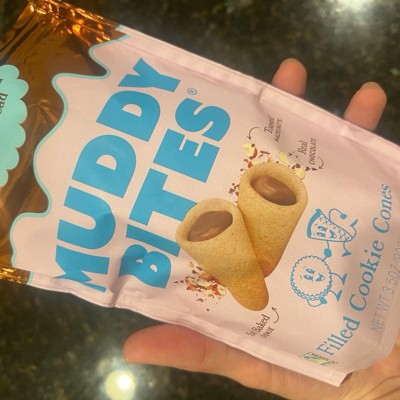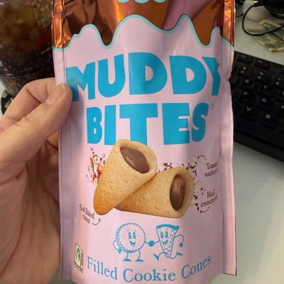 Okay these Muddy Bites are actually dangerous, in the best way! The hazelnut cocoa filling is so rich and creamy, and that shortbread cone has the perfect crunch. As a busy mom, I love having a quick little treat that feels indulgent without being a whole dessert. Cute packaging, amazing flavor and highly addicting. I may already need another bag.