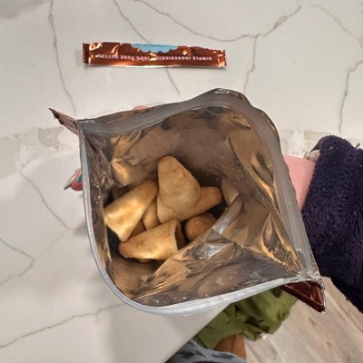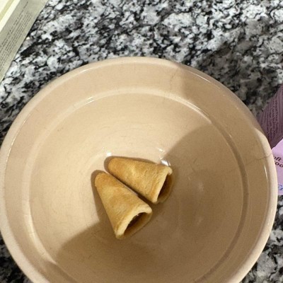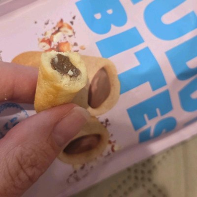 I purchased these because they reminded me of the bottom of an ice cream cone and I love chocolate hazelnuts spread. I was surprised by how large these bites were. They taste pretty well, however I was expecting the flavor to be more chocolate forward. I still did enjoy them and finish them pretty quickly. Great for a quick sweet treat on the go.