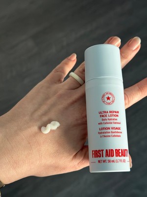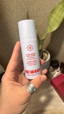 [This review was collected as part of a promotion.] This ultra repair face lotion from First Aid Beauty is so hydrating on my skin. I have sensitive skin that sometimes turns red and irritated. This lotion helps. It sinks right in to leave my face feeling so soft. Make up goes on like a dream.