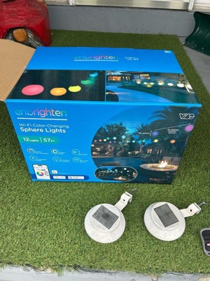 [This review was collected as part of a promotion.] Enbrighten 57 feet outdoor string lights are amazing. It has 12 color changing bulbs that allows you to change with an app on your phone. They are very durable and the bulbs are large! They plug in so you don’t have to worry about batteries. Only downside is the clips. They weren’t very useful, we had to add zip strips to keep them in place.