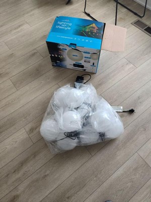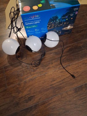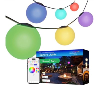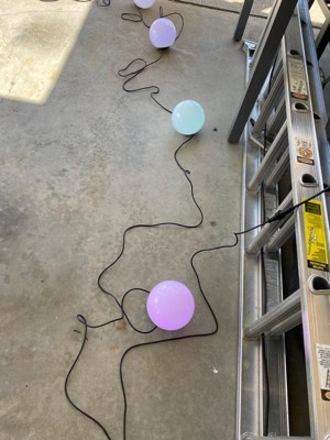 [This review was collected as part of a promotion.] The Enbrighten Outdoor Color Changing String Lights are such a fun product. The 57ft (plus a 16ft lead wire) was more than long enough for my balcony. It included 12, 6-inch globes spaced 5 feet apart. The Enbrighten Vibe LED Wi-Fi Sphere Globes are made from some type of durable plastic, and won't break from normal use. My favorite detail about these lights is the Wi-Fi compatibility, app control, and customization features. The Enbrighten App allows me to customize up to 6 colors at a time, choose from 20 different effects, and save my own settings. My husband and I spent hours just playing with this feature- for fun, not befause it was difficult. It was, actually, very simple to unbox and install. Additionally, the app downloaded quickly, paired with the device, and performed with no bugs. Truly awesome product. I will definitely be getting more, and referring friends.