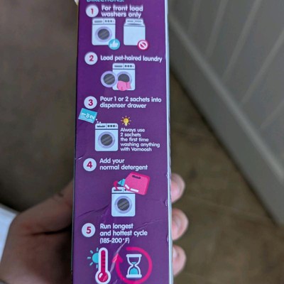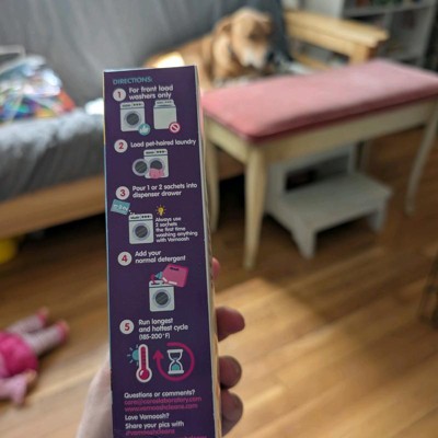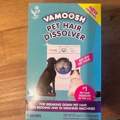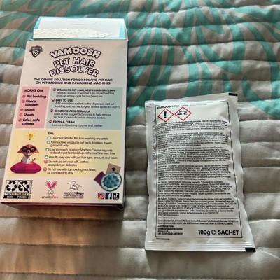 This product is great. I follow Vamoosh on Instagram and was avoiding buying this from other platforms. As soon as I saw that they were now selling it in Target, I picked it up, and I am shocked by how good it is. I used 2 sachets as instructed on the pack on my Labrador's hairy blankets, and they have come out of the wash looking new. This is a life changer for me as some family members suffer with allergies, especially when they are close to the labs blankets. The scent isn't very strong, it would be nice if it had a fruity or clean smell, but that isn't a huge issue, as this product has made my life so much easier. I haven't found another product like this before.