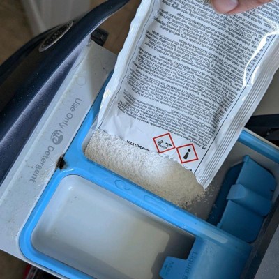 I bought these specifically to help clean up our washing machine buildup internally from all the pet hair that has got to be in it. We have several hair dogs Boston terrier, pitbull, etc and therefore those hairs get so deep into everything. I immediately after using it noticed that our closed seemed to come cleaner and didn’t have to do the extra rinse anymore to get the detergent all the way out and of course less hair after washing dog beds and such. Great product and I love to use it to keep my machine running better! As you can see each packet is decent sized and goes right into the machine or your detergent drawer and then it suds up pretty well inside the machine.