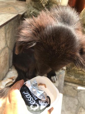 [This review was collected as part of a promotion.] I used this on my dog and she ate it in a flash! I must say that this chicken recipe is very good, because my dog loves it! I literally had to buy more! It also came with no scratches, it is small so it’s easy to store it. The food also lasts very long! The picture outside makes it look really good as well.Perfect for dog owners!