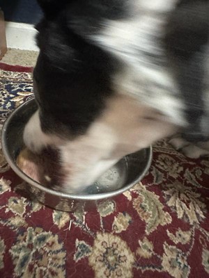 [This review was collected as part of a promotion.] My puppy really loved this, the serving is perfect maybe if your pup doesn’t eat a lot it would be considered a lot but i like to section it into 2 for breakfast and dinner on top of some dry wet dog food, and it works really well for my pup. My dog didn’t have any problems with it i would say it went down really easily. He didn’t have trouble eating it not swallowing it which is great definitely a must