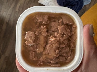 [This review was collected as part of a promotion.] Perfect size wet dog food. It has that dog food scent that dogs go crazy for. My pug loves this and acts like it’s a treat whenever I take this out. Package comes with 12 portable small tray of food. She loves that chicken and beef flavor. Sometimes I mix this with dry dog food as well. The foil seal helps keep the food fresh.