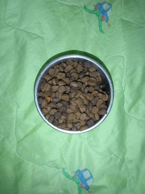 [This review was collected as part of a promotion.] Tonight was my puppy's first taste of Iams proactive Healthy High protein dry dog food. His vet recommended a high protein diet to keep him healthy, his coat in good condition. The serving size for him was a cup and a half.We are hoping that it keeps him full for the rest of the evening.