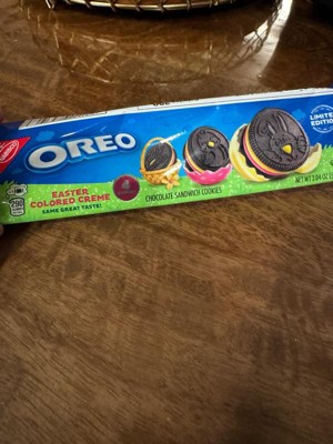 [This review was collected as part of a promotion.] Very cute in terms of the detailing on the Oreos and the filling was different colors for Easter. I feel like the taste of these Oreos is slightly different than original so therefore I took off a star