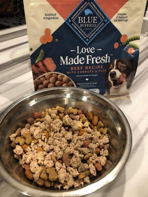 Elevate mealtime for your best friend with fresh fridge-to-bowl goodness from Blue Buffalo. It's another way to show love to the dog you feed like family. Storage instructions: Keep refrigerated and use within 7 days of opening.