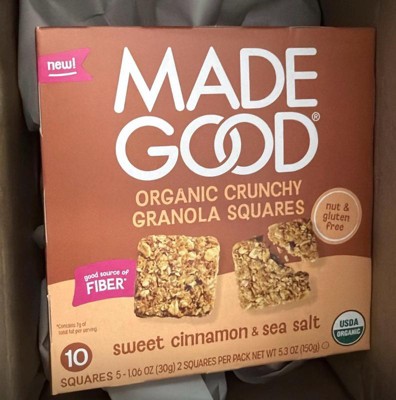 MadeGood Organic Crunchy Granola Squares Sweet Cinnamon & Sea Salt Snack Bars - 5.3oz/10ct