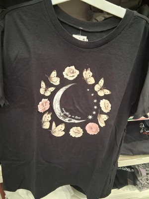Women's Floral Butterfly Moon Phase Short Sleeve Graphic T-Shirt - Black - 2 of 4Women's Floral Butterfly Moon Phase Short Sleeve Graphic T-Shirt - Black - 3 of 4Women's Floral Butterfly Moon Phase Short Sleeve Graphic T-Shirt - Black - 4 of 4