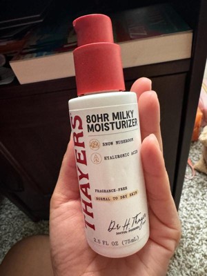[This review was collected as part of a promotion.] The Thayers 80 Hour Milky Moisturizer is a lightweight & affordable moisturizer. It delivers deep, lasting hydration with snow mushroom, hyaluronic acid & shea butter. It is perfect for a dryer skin type as it was a little too much for my oily skin. It applies like a serum but hydrates like a heavy cream with a non-greasy finish, which made a great primer for under makeup. It is fragrance free, perfect for sensitive skin