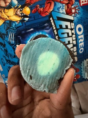[This review was collected as part of a promotion.] This is a fun concept for kids and adults. It taste almost exactly like the original Oreo's. The Marvel super heroes packaging is great, well designed. The cookie itself has several Marvel theme symbols. The most unique part of this cookie is that the cream portion turns blue when you lick it, which is the best way of eating Oreo since the 90s. After enjoying the snack, your tongue turns blue too.