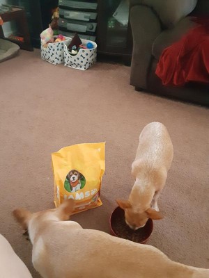 They ❤❤❤ it! Lol my oldest dog is having a hard time sharing the bowl but BOTH of them went right at it. The pcs are not too too big for them to chew. I def recommend Iams for your fur babies.