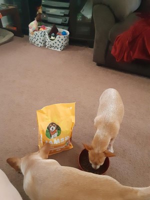 My puppy loves this food. I couldn't tell you how long it's been since he ate a full bowl of food until we switched to this he get so excited to eat now. It has great ingredients like carrots that help with eyesight. It has nice packaging although it's hard to open and doesn't have a re-openable seal.