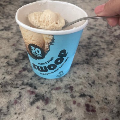 Got this Swoop frozen dairy dessert to eat it all without any guilt.Its high protein vanilla flavored Icecream with 30 g of protein per pint and 130 calories per serving.Itsmad with clean simple ingredients and naturally sweetened with coconut nectar.The good thing is it taste good and have smooth creamy texture.