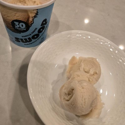 I wasn't sure about this higher protein ice cream from Swoop when I bought it. I thought it would have some weird taste to it like some higher protein foods do but it tasted really good. It tasted like regular vanilla ice cream. Has 10 grams of protein in a serving. Its a pretty small container but good if you want some extra protein in a dessert.