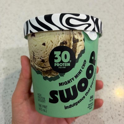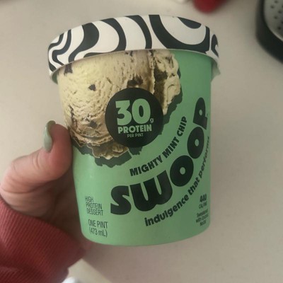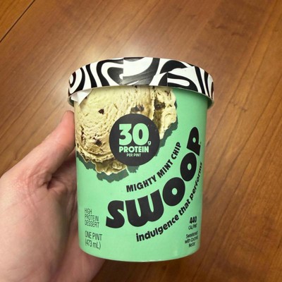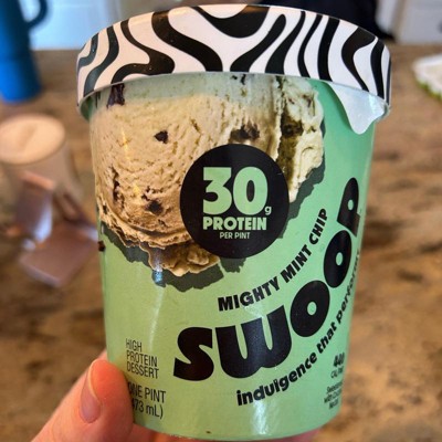 I bought this one and the protein pints mint chip to compare the two. I prefer the protein pints. This swoop is falling short on mint flavor and also has a very gross aftertaste every bite. I had to push through to finish it. Not as creamy but still pretty good.