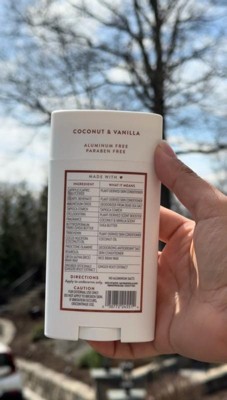 [This review was collected as part of a promotion.] I really like this deodorant. The coconut and vanilla scent is soft and pleasant, not too strong. It keeps me feeling fresh throughout the day and feels gentle on my skin