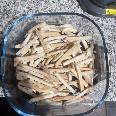 Without question, the best frozen make at home fries I’ve ever had. They are better than most restaurant ones. Cooked for 12 minutes in a wire basket/tray in the oven’s air fryer setting at 375. Seasoned lightly with popcorn salt (sticks better).